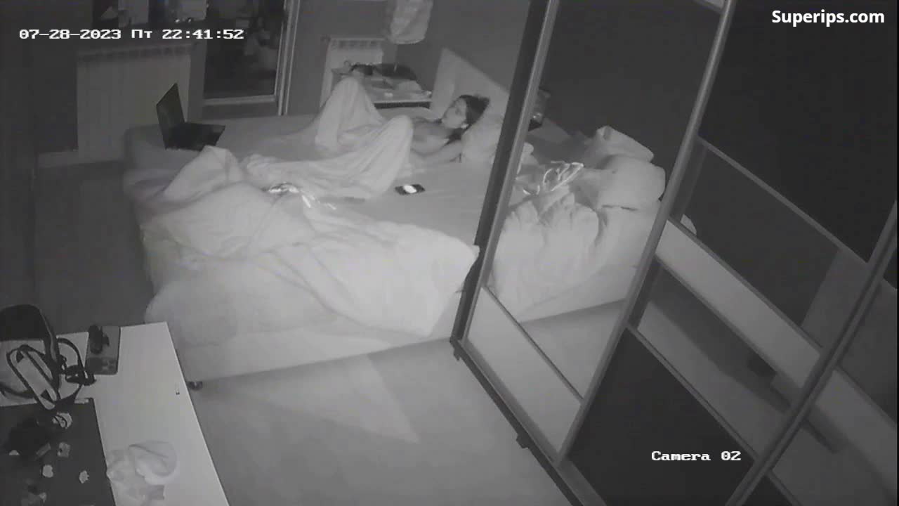 IPCAM – American blonde woman masturbates while watching porn