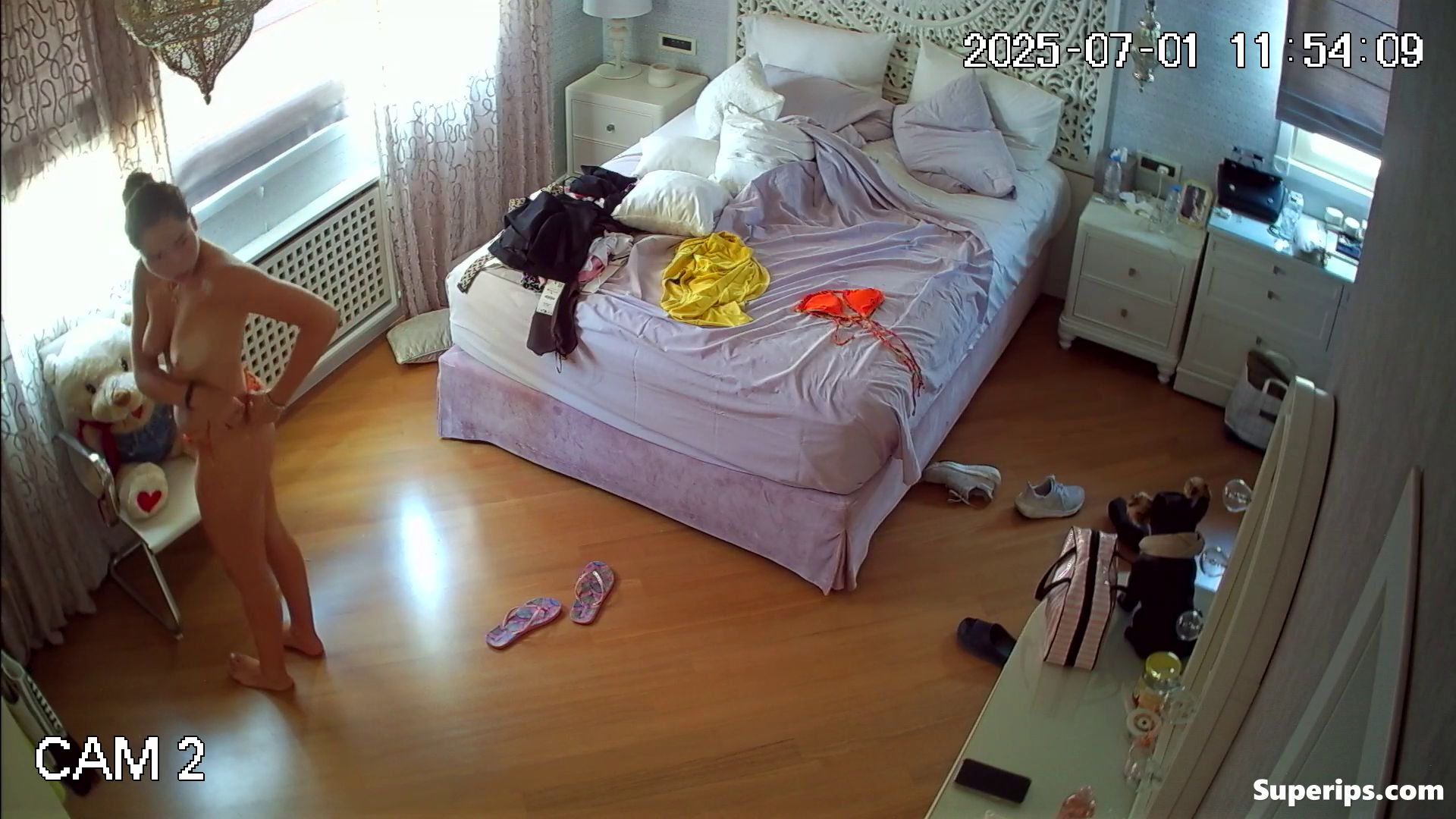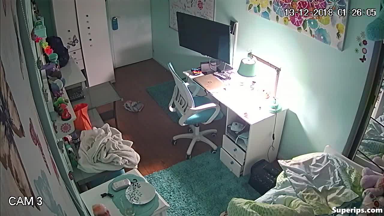 German nerdy girl slowly changing clothes. You can see how this cute young girl is in her room slowly changing clothes, showing her completely naked teenage body.