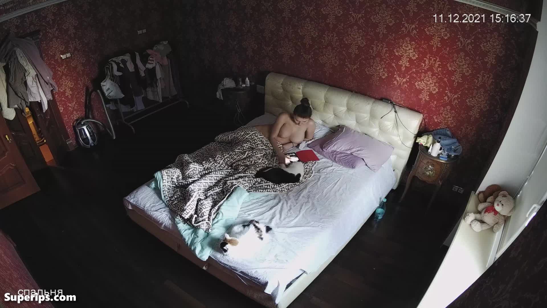 A teenage college girl masturbates; you can see how this young girl is lying on her bed, and then she starts masturbating slowly under the sheets.